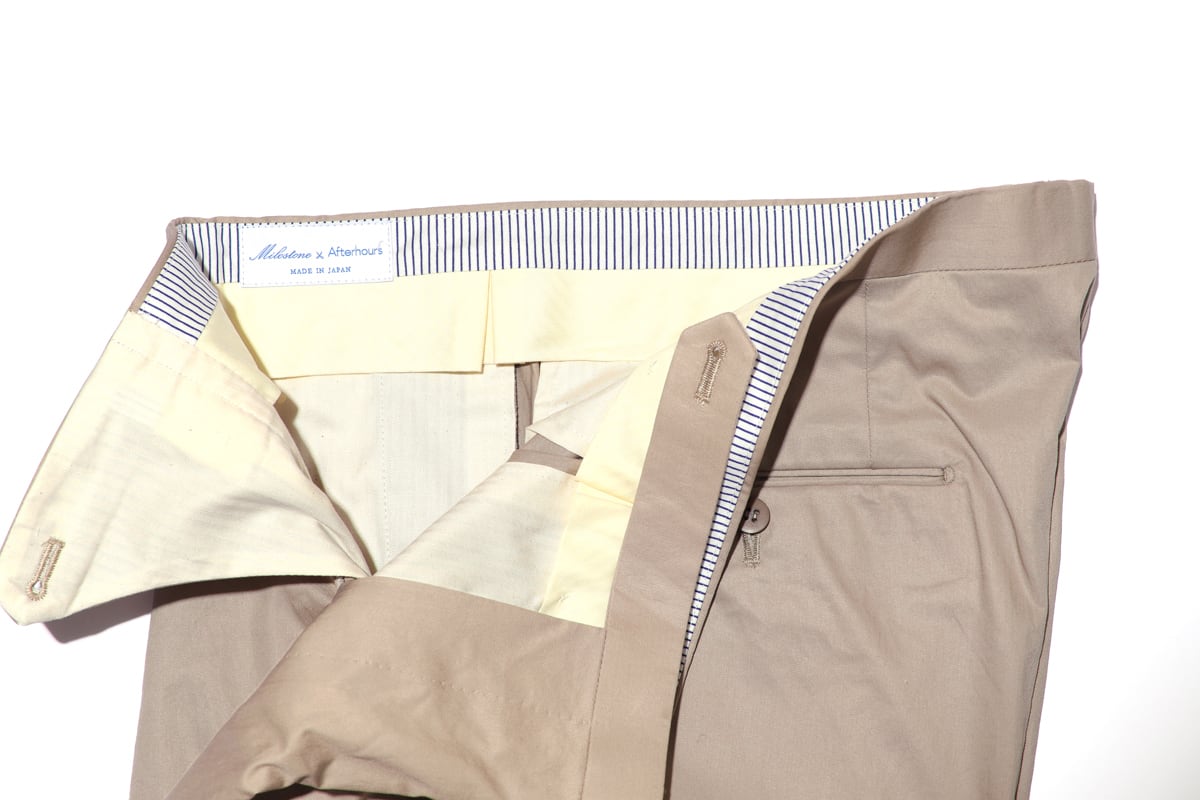 MILESTONE×AFTERHOURS Twill Brezza(そよ風ツイル)サイドアジャスターコットントラウザーズ ベージュ