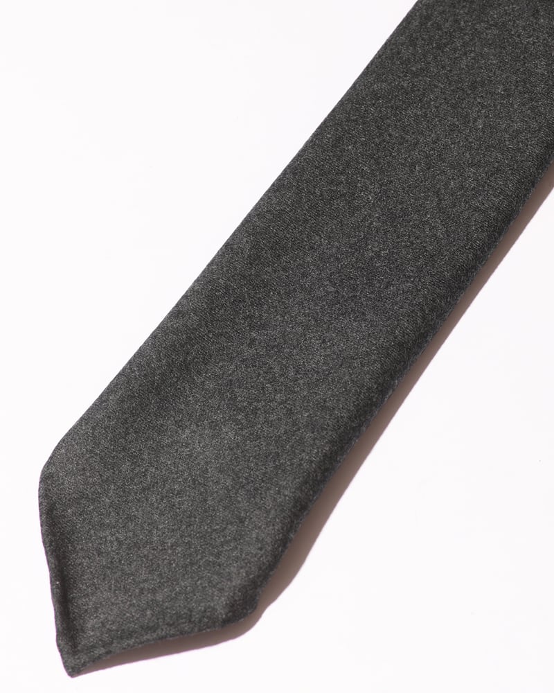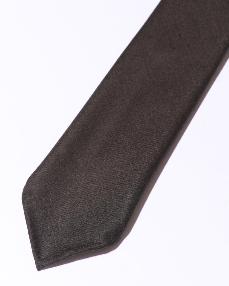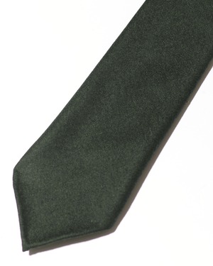 ウールならではの温かみのある素材感と抑揚のある艶感が、Vゾーンに秋冬らしい上品な華やぎを添えます。セブンフォールド社らしい4色それぞれの独特の色合いが、スタイリングを引き立ててくれるタイです。