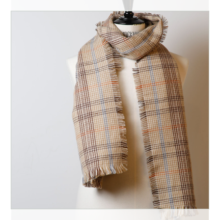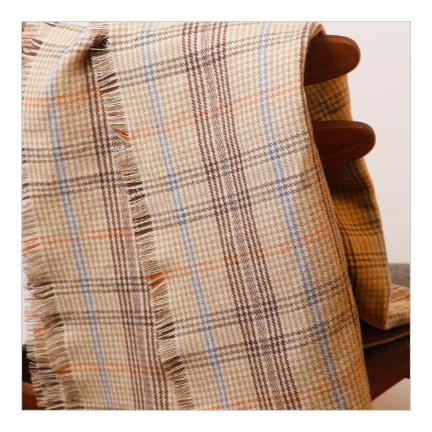 THROW リネンウールカシミアストール(ベージュ×ブラウン×ブルー×オレンジ)